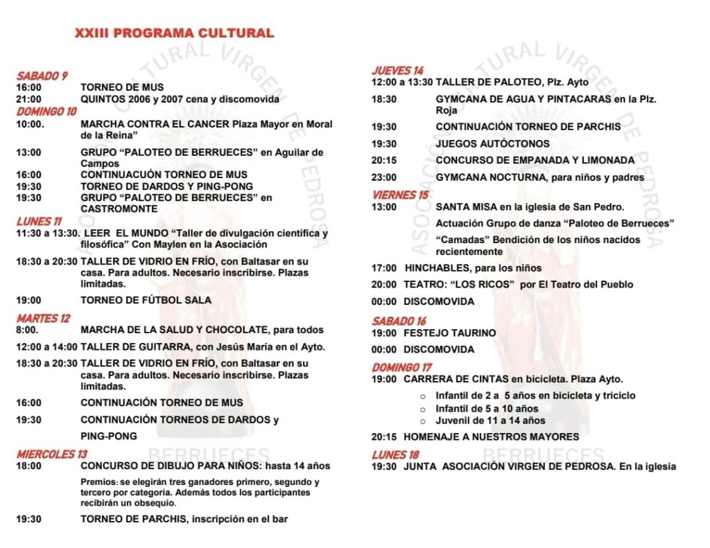 José María nos ha dejado un gran legado a los vecinos y descendientes de Berrueces. Gracias a su impulso y con la ayuda de unos pocos, ante el grave deterioro de la iglesia allá por el año 2000, se puso a trabajar para aunar voluntades de personas e instituciones directamente y a través de la Asociación Virgen de Pedrosa de la que, con otros pioneros, fue promotor, y que se ocupa de la defensa, rehabilitación y conservación del patrimonio de Berrueces.