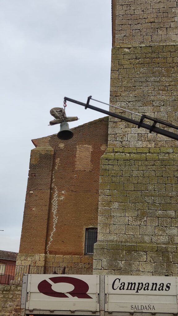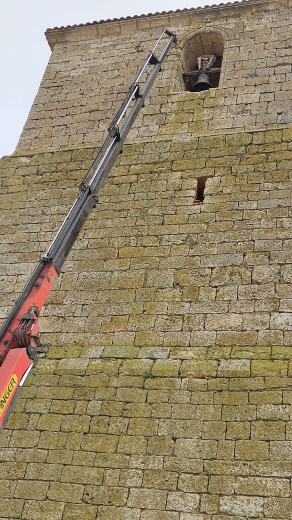 A continuación os mostramos unas fotografías de la retirada de las campañas y un link del año 2018 «LAS CAMPANAS DE BERRUECES Y SUS TOQUES» https://asociacionvirgendepedrosa.org/toques-campanas-berrueces/