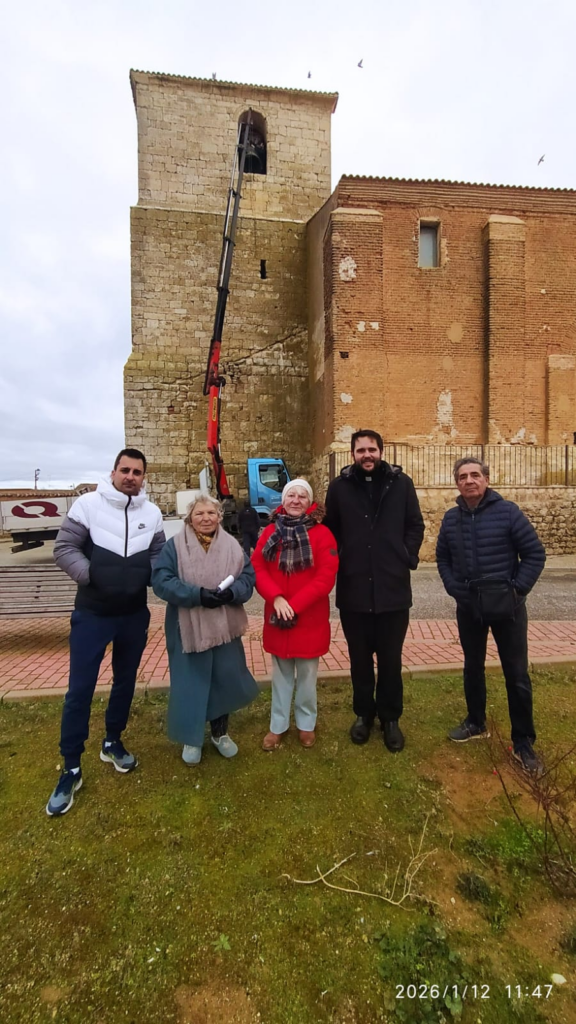El procedimiento a seguir para la restauración es complejo y laborioso. Las campanas se han extraído mediante un camión grúa, posterior transporte hasta Saldaña, a los talleres de la empresa Quintana para la restauración de los distintos elementos y limpieza de las campanas, en este acto además de la Junta directiva de la asociación, Arsenio de la Rosa, Concepción Rodríguez y Francisca Martin, han estado presentes el alcalde, Gabino González, el párroco Mario Martín. Y por parte de la Delegación de Patrimonio del Arzobispado su responsable Juan Carlos Álvarez, el arquitecto Fernando de Buenrostro y el aparejador Javier Arranz.
